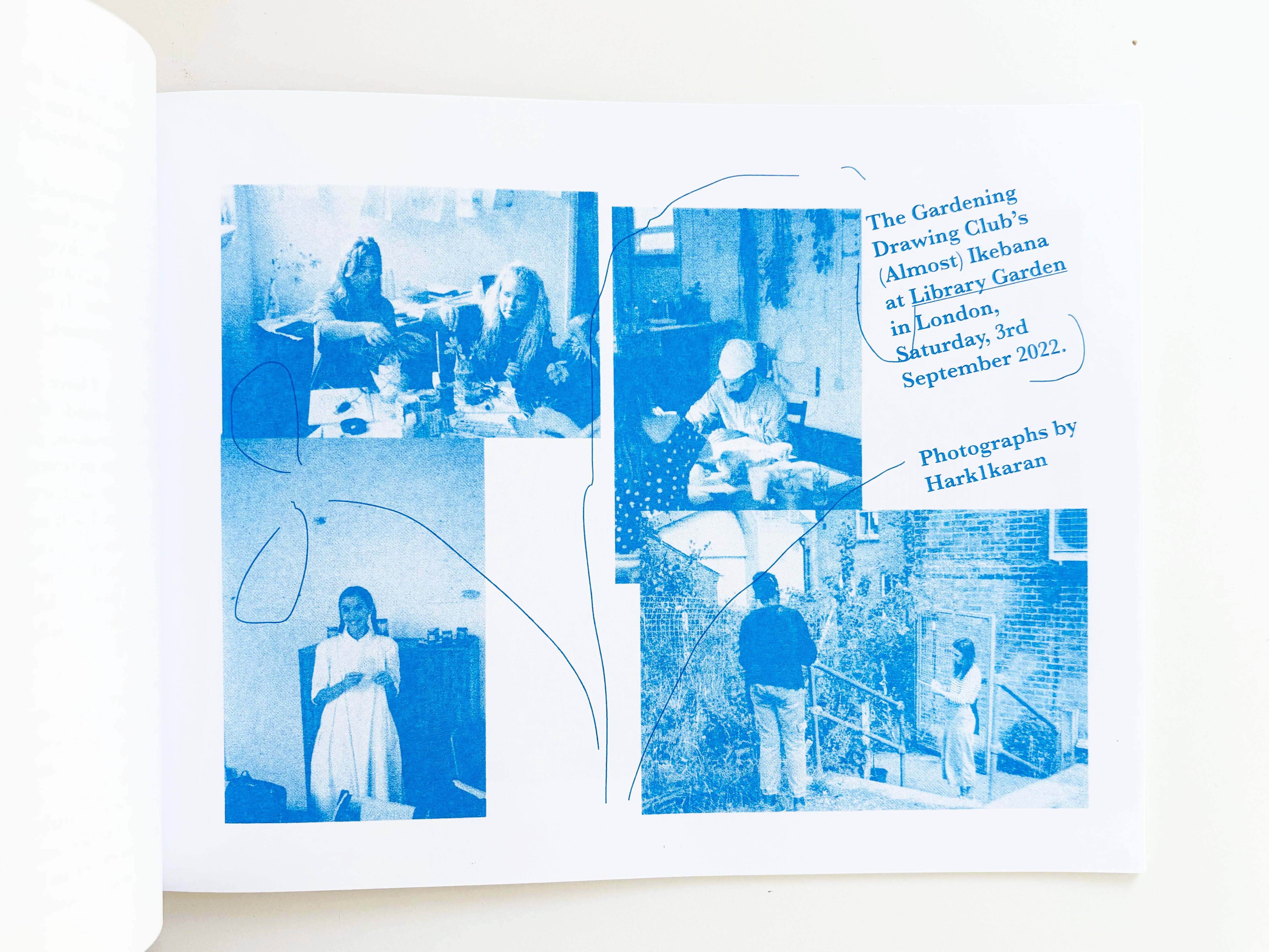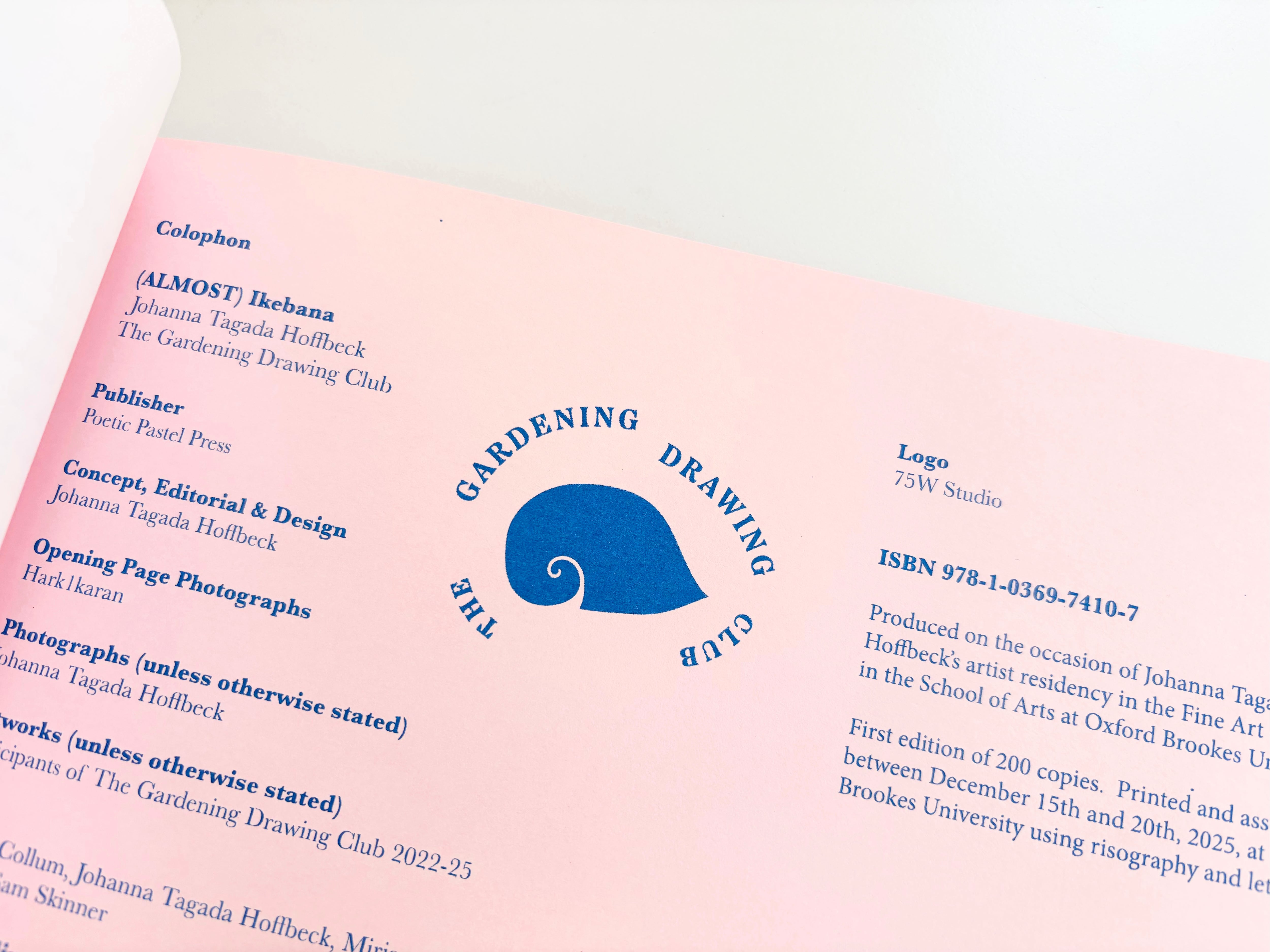 Poetic Pastel Pressより刊行された『(ALMOST) Ikebana』。手作業で制作された200部限定の出版物です。The Gardening Drawing Clubのこれまでの活動のアーカイブを中心に、George Collum、Viola Maccreli、Miriam Melake、Kasia Murfet、Sam Skinner、Johanna Tagada Hoffbeckによる寄稿が収録されています。